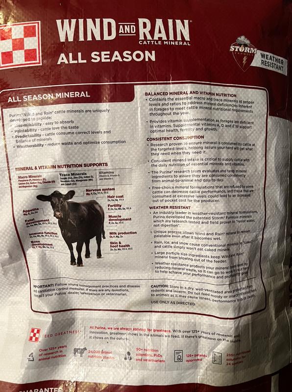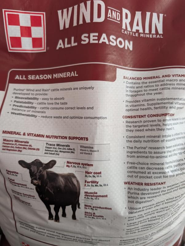 Purina Wind & Rain All Season 7.5% Phosphorus Complete Cattle Mineral, 50-lb bag