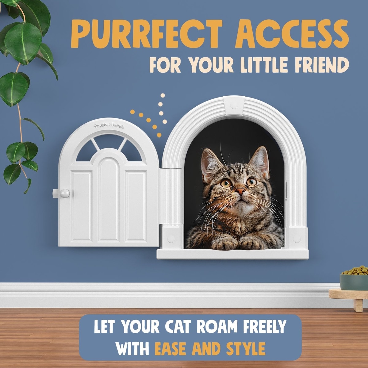 Purrfect Portal Wall Entry Meow Manor Plastic Interior Cat Door, White, Large