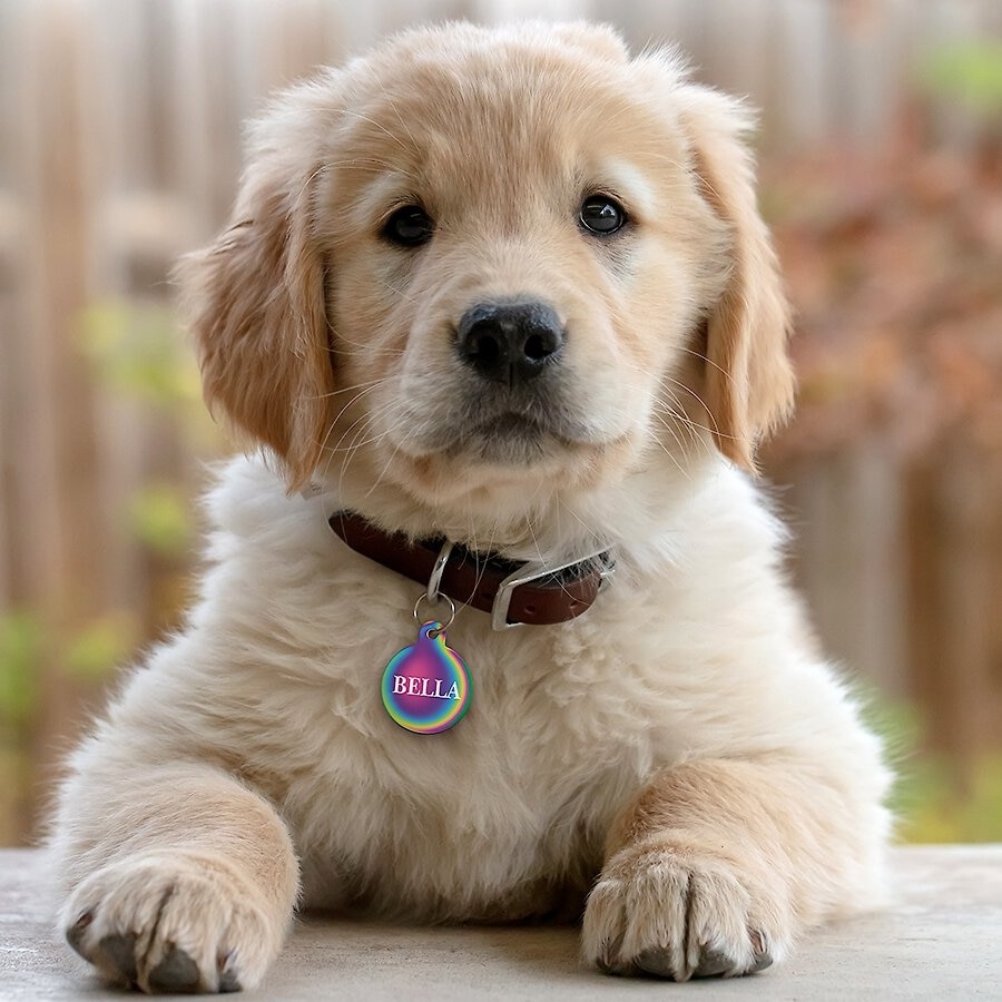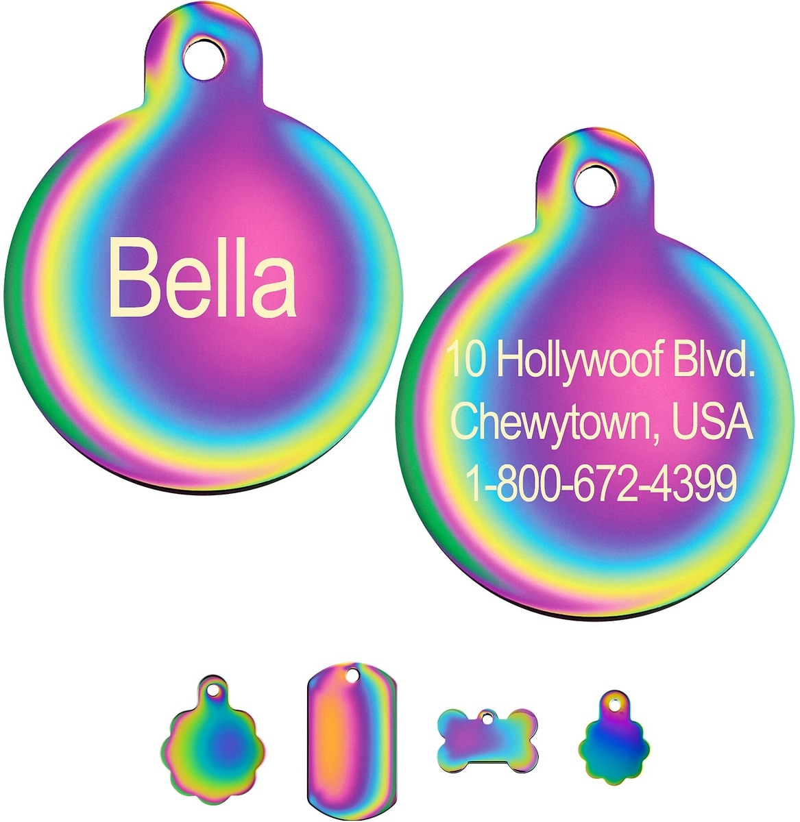 Quick-Tag Coated Metal Personalized Dog & Cat ID Tag, Metallic Rainbow, Large Circle