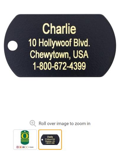 If I could give this a zero star I would. I bought this particular tag in Michigan Wolverine dog tag style for my second new puppy. I recently had a puppy pass away due to a very rare circumstance. My husband and I got another one a few days later (for our older dog). We still wanted to do a Michigan collar and tag for him but that is what our other puppy had. So I found a different style collar and a different style tag. For my previous puppy we bought the dog bone shaped Michigan tag... that got banged up and scratched and looked pretty bad after a week or so. I was excited to try a different style so A) our new pup would have his own identity (their colorings are pretty much the same and in pictures they almost look like the same dog if wearing the same collar) and B) I thought FOR SURE this tag (military style) would hold up longer.... It’s been 3 HOURS since it came in the mail and it looks AWFUL. I waited to get this in the mail instead of going out in person to get one because I could only find this style online. Don’t waste your money, go with the old school plain tags. Pictures attached. Probably won’t even be able to read his name after a few DAYS