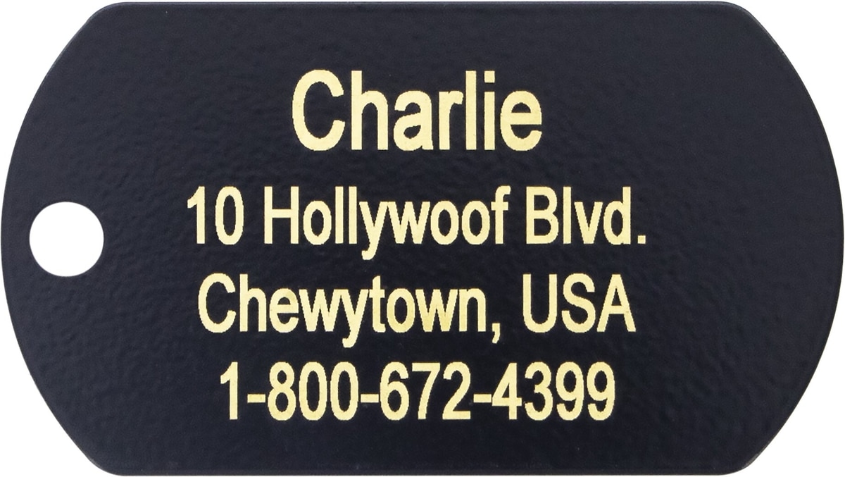 If I could give this a zero star I would. I bought this particular tag in Michigan Wolverine dog tag style for my second new puppy. I recently had a puppy pass away due to a very rare circumstance. My husband and I got another one a few days later (for our older dog). We still wanted to do a Michigan collar and tag for him but that is what our other puppy had. So I found a different style collar and a different style tag. For my previous puppy we bought the dog bone shaped Michigan tag... that got banged up and scratched and looked pretty bad after a week or so. I was excited to try a different style so A) our new pup would have his own identity (their colorings are pretty much the same and in pictures they almost look like the same dog if wearing the same collar) and B) I thought FOR SURE this tag (military style) would hold up longer.... It’s been 3 HOURS since it came in the mail and it looks AWFUL. I waited to get this in the mail instead of going out in person to get one because I could only find this style online. Don’t waste your money, go with the old school plain tags. Pictures attached. Probably won’t even be able to read his name after a few DAYS
