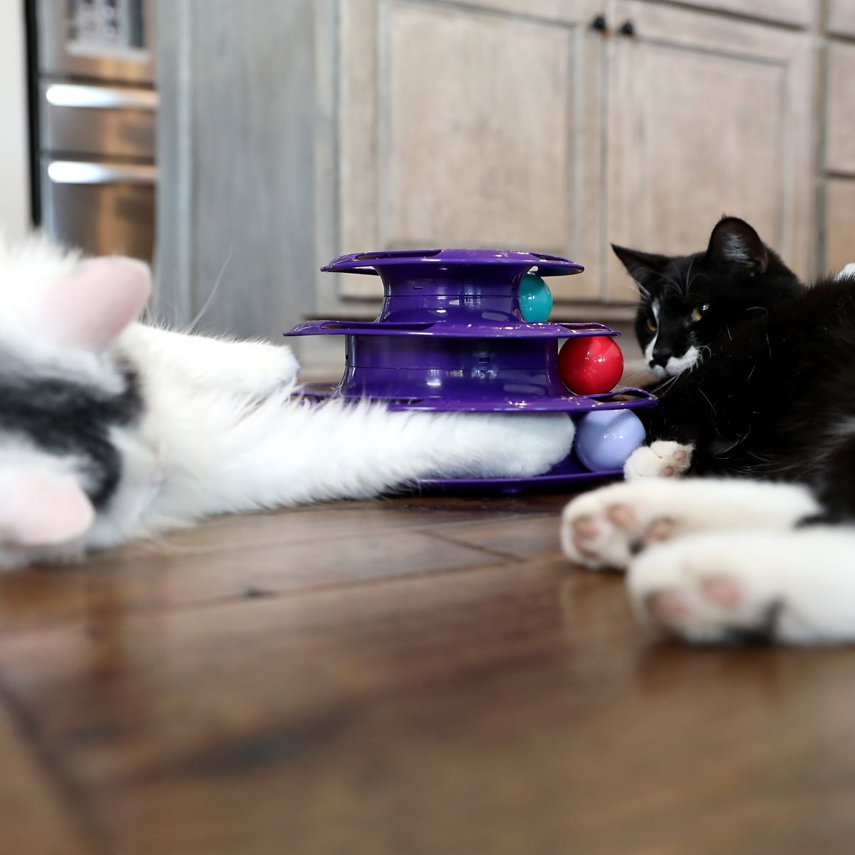 3 levels of interactive play purr-fect for batting, pouncing and chasing.
