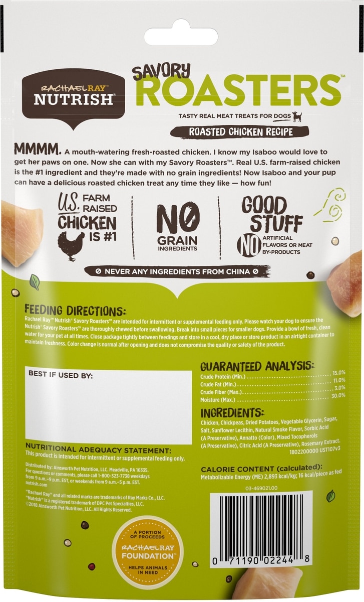 Rachael Ray Nutrish Savory Roasters Roasted Chicken Grain-Free Recipe Dog Treats, 3-oz bag