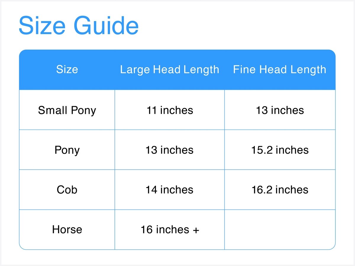 I used to get these fly masks for years for my old horse. He had kind of a chunky, but short, head and I'm pretty sure I used to get the Horse size for him. I always loved the design of these and how well it kept the mesh away from my horse's eyes. Now I have an Arabian, with a typical fine Arabian head. I saw the reviews that the sizing ran big, so I went with the Pony size for him at first. It was so big that it fell off the moment he shook his head. I contacted Chewy and they refunded me, and I reordered the Small Pony size. It was so small that the velcro would barely reach to close. The sizing chart is pretty unhelpful (Large head length and fine head length? What does that even mean? Where do you measure?) but I guess it doesn't matter since there's not a size between Pony and Small Pony to try.