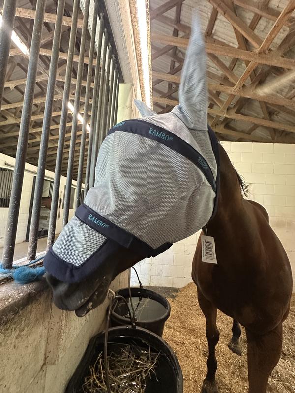 Rambo Horse Fly Mask, Silver with Titanium Grey & Silver, Cob