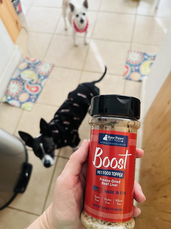 I sprinkled the Boost Freeze-Dried Beef Liver food topper on my dogs dinner. They both smelled it 1st, and then chowed down! It’s a hit, and I’m happy for the healthy
