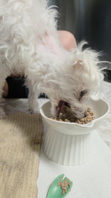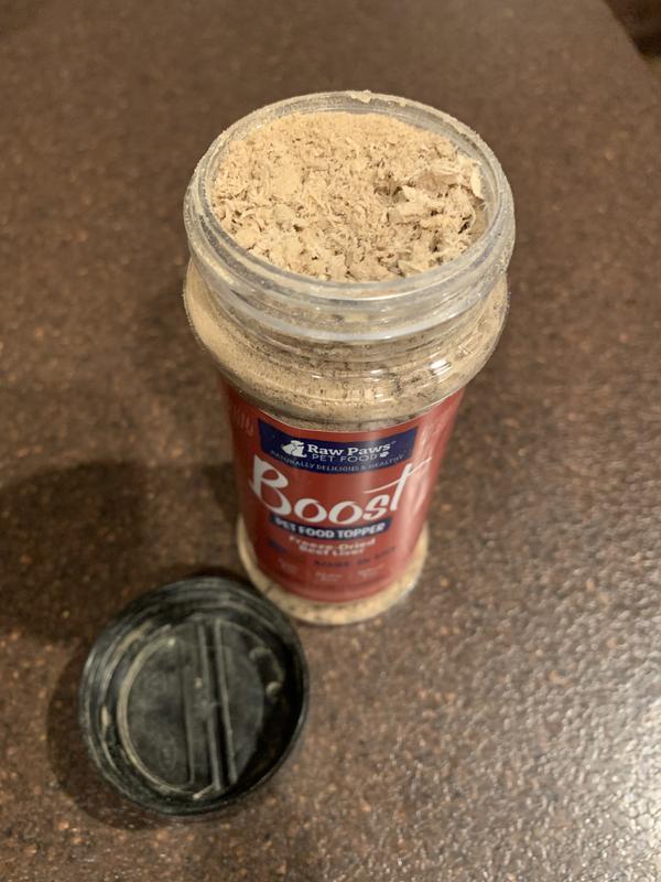 My dog is completely nutz over this product. The first time I sprinkled it on her food, I kept hearing these clanging sounds and it was her licking and moving the stainless bowl around like crazy so she would get every last taste of the Raw Paws. I have tried others toppers, but never have I seen such an eager and excited reaction from only several shakes on her food.