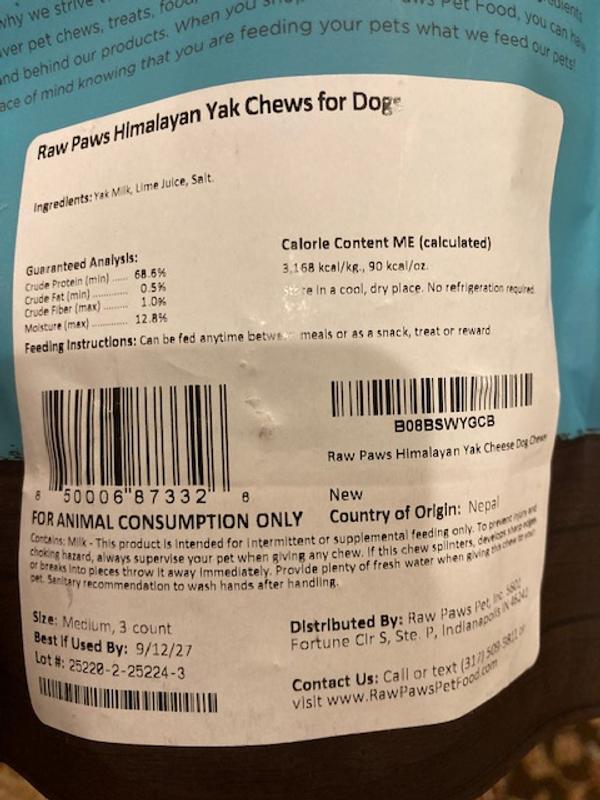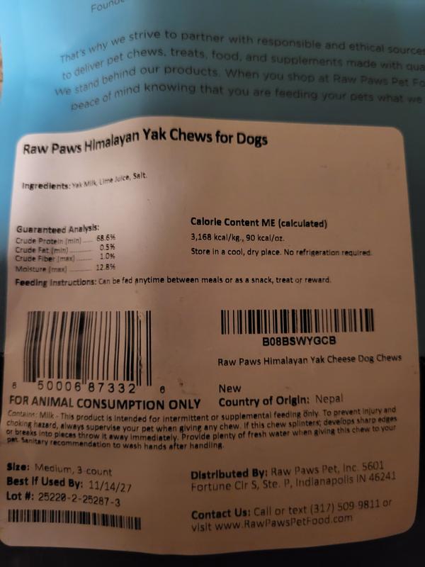 Raw Paws Himalayan Yak Dog Chews, Medium, 3 count