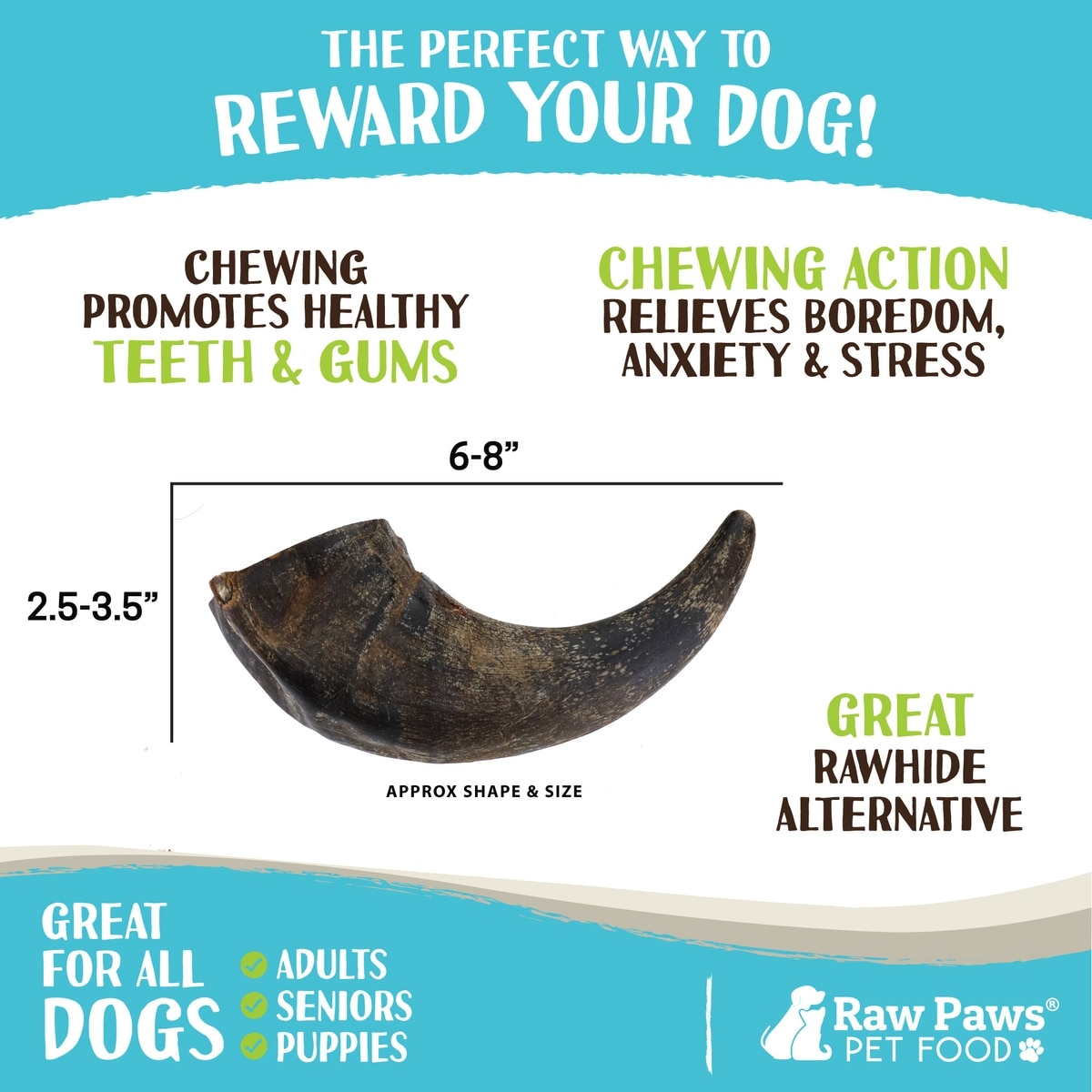 Raw Paws Water Buffalo Horns Dog Treats, Medium, 4 count