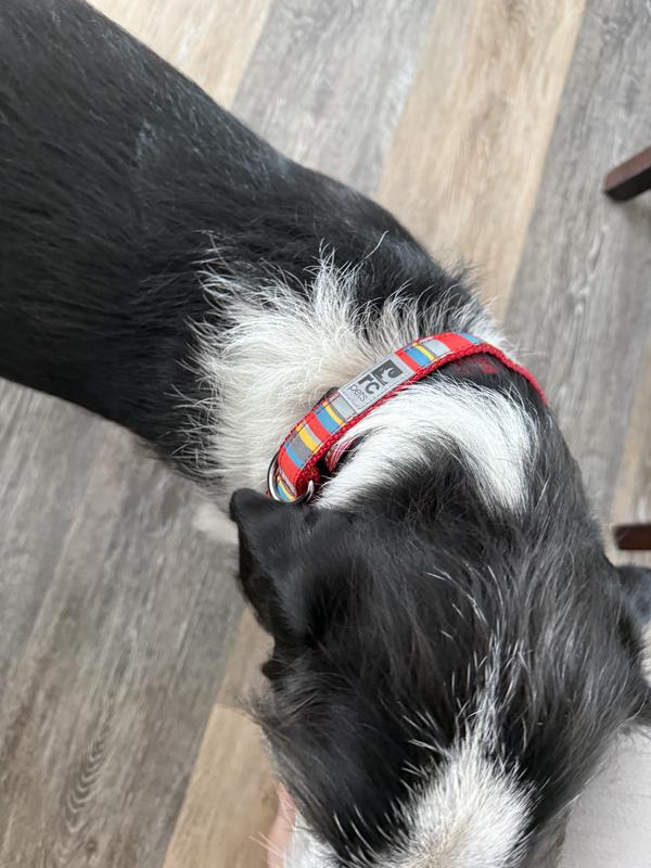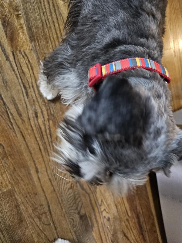 This collar is amazing! The colors are vibrant and look great on my dog, the material has held up well with my rambunctious 7m hound mix who is into everything,