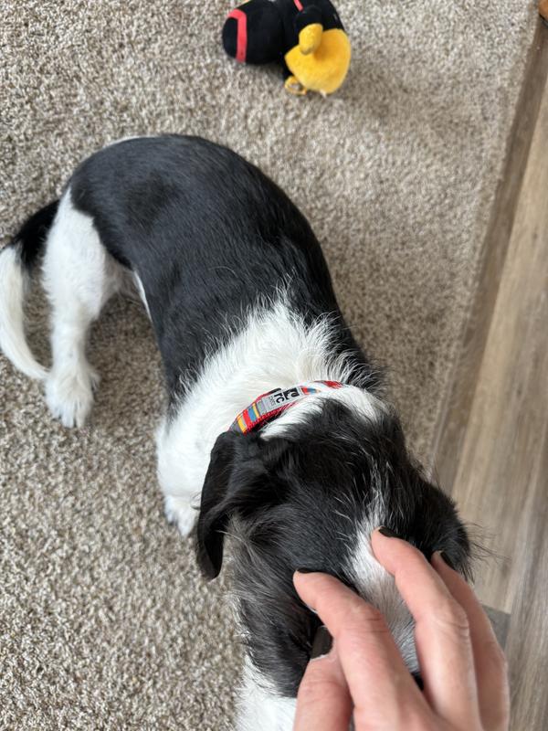 This collar is amazing! The colors are vibrant and look great on my dog, the material has held up well with my rambunctious 7m hound mix who is into everything, and the sizing instructions were perfect. I will definitely get this collar again when this one starts to look worn.