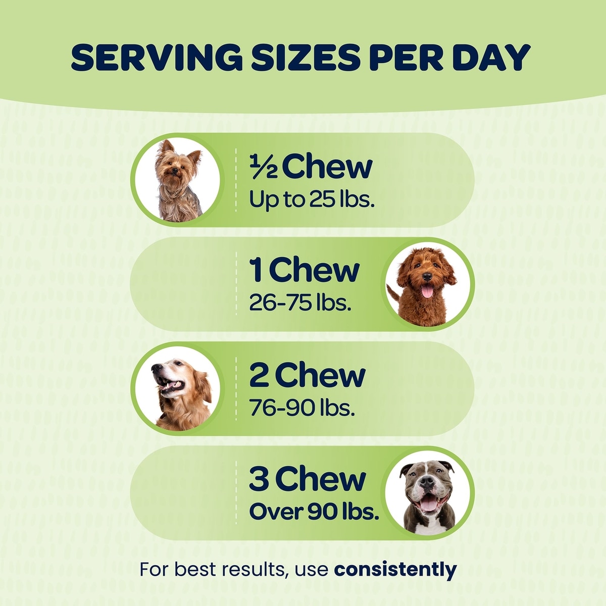 Our boxer loves taking these good gut probiotic chews. We give her 1 a day, her poops have really improved making it easy to clean up. We’ve also seen an improvement with her breath and gums.