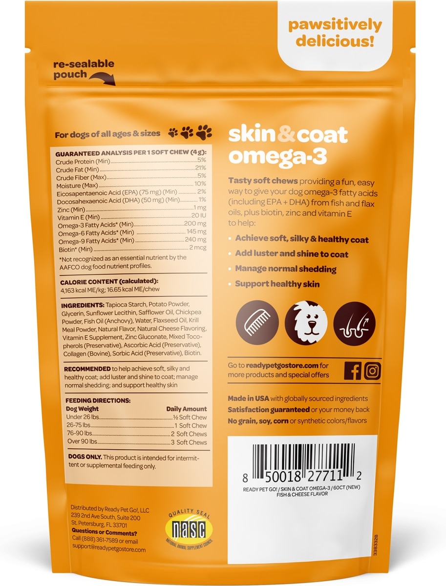 Ready Pet Go Skin & Coat Omega-3 Dog Supplement, 60 count