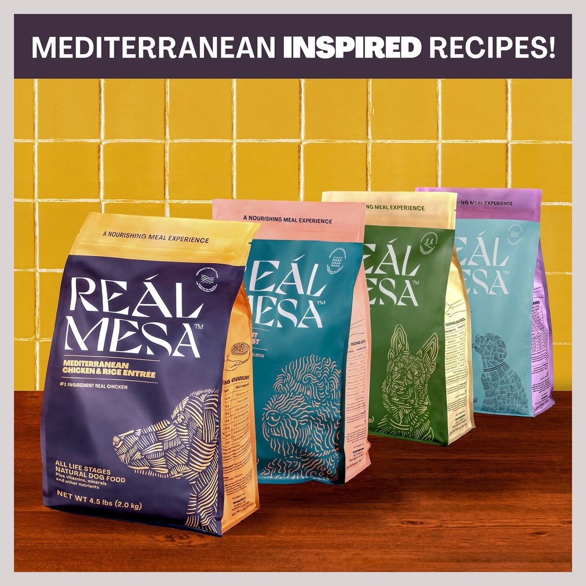 REAL MESA natural dog food is crafted with real, wholesome, Mediterranean-inspired ingredients. Each recipe is thoughtfully prepared to meet your dog's nutritional needs and free from artificial flavors, colors, and preservatives!