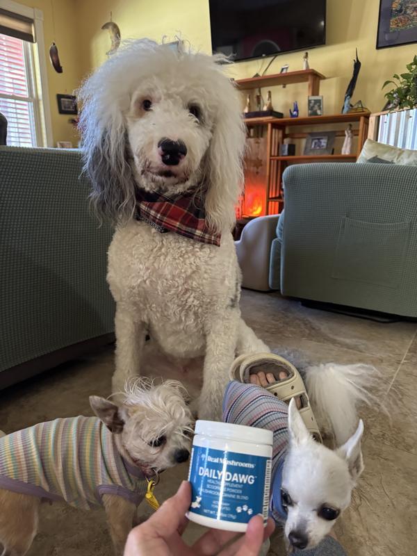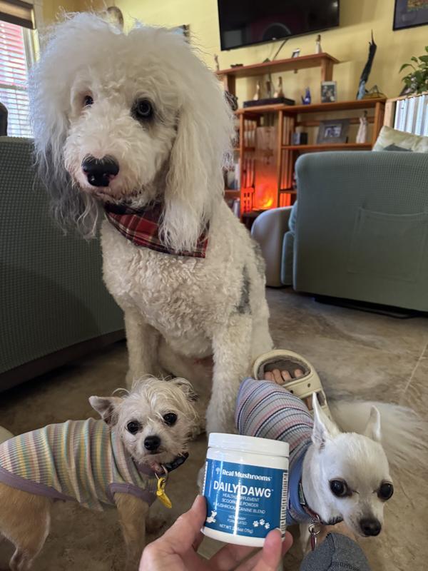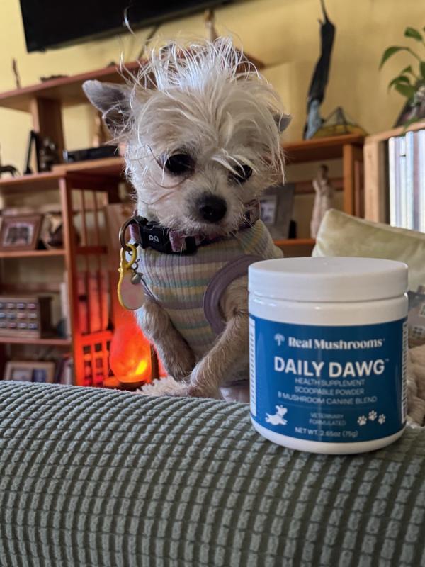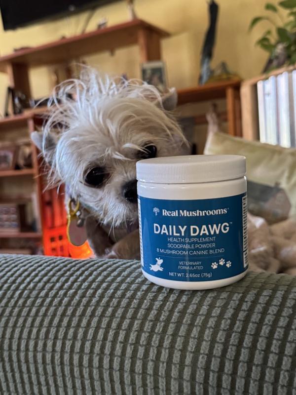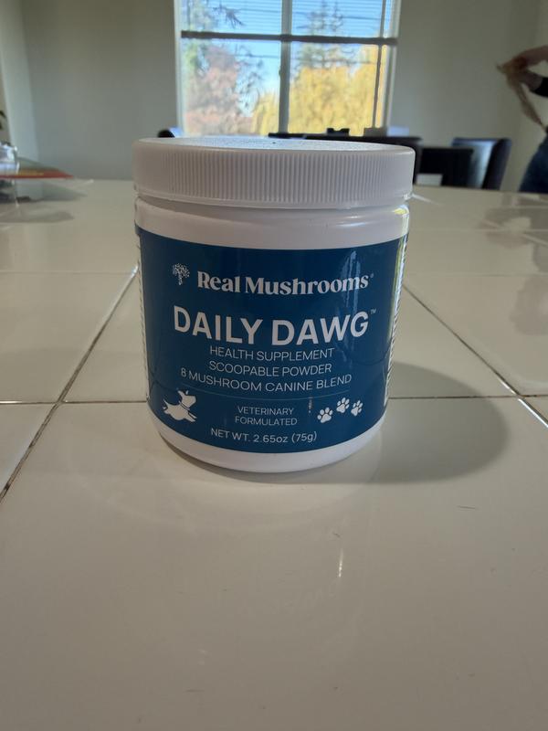 Daily Dawg is a real mushroom health supplement for dogs. There are 8 mushrooms for a delicious canine blend. It is scoopable and easy to mix into the dog food. However, it did cause digestive upset in my dog. My dog tends to have a sensitive digestive system. I thought this would help with that. It didn't. She was not able to finish her sample.