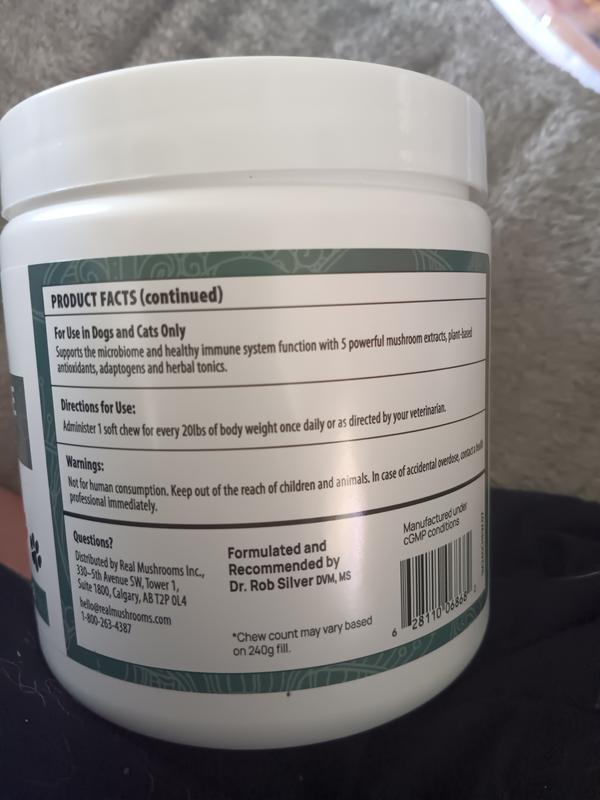 Real Mushrooms Mushroom Immune Chews Supplement for Dogs & Cats, 60 count