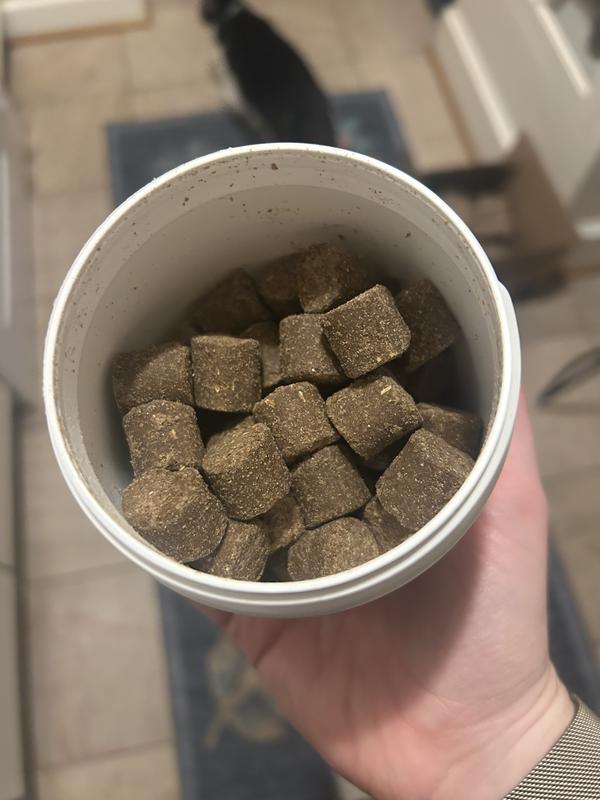 Four of my dachshunds are seniors and they are pretty chilled out. However our 6 year old female gets extremely stressed out whenever I attempt to trim her nails. I was skeptical at first as to whether this product would help calm her down. She enjoys the cubes and allows me to trim her nails without all the drama.
