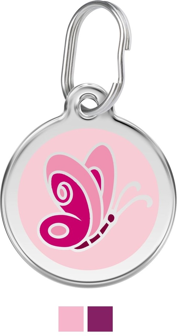 Red Dingo Butterfly Stainless Steel Personalized Dog & Cat ID Tag, Pink, Small