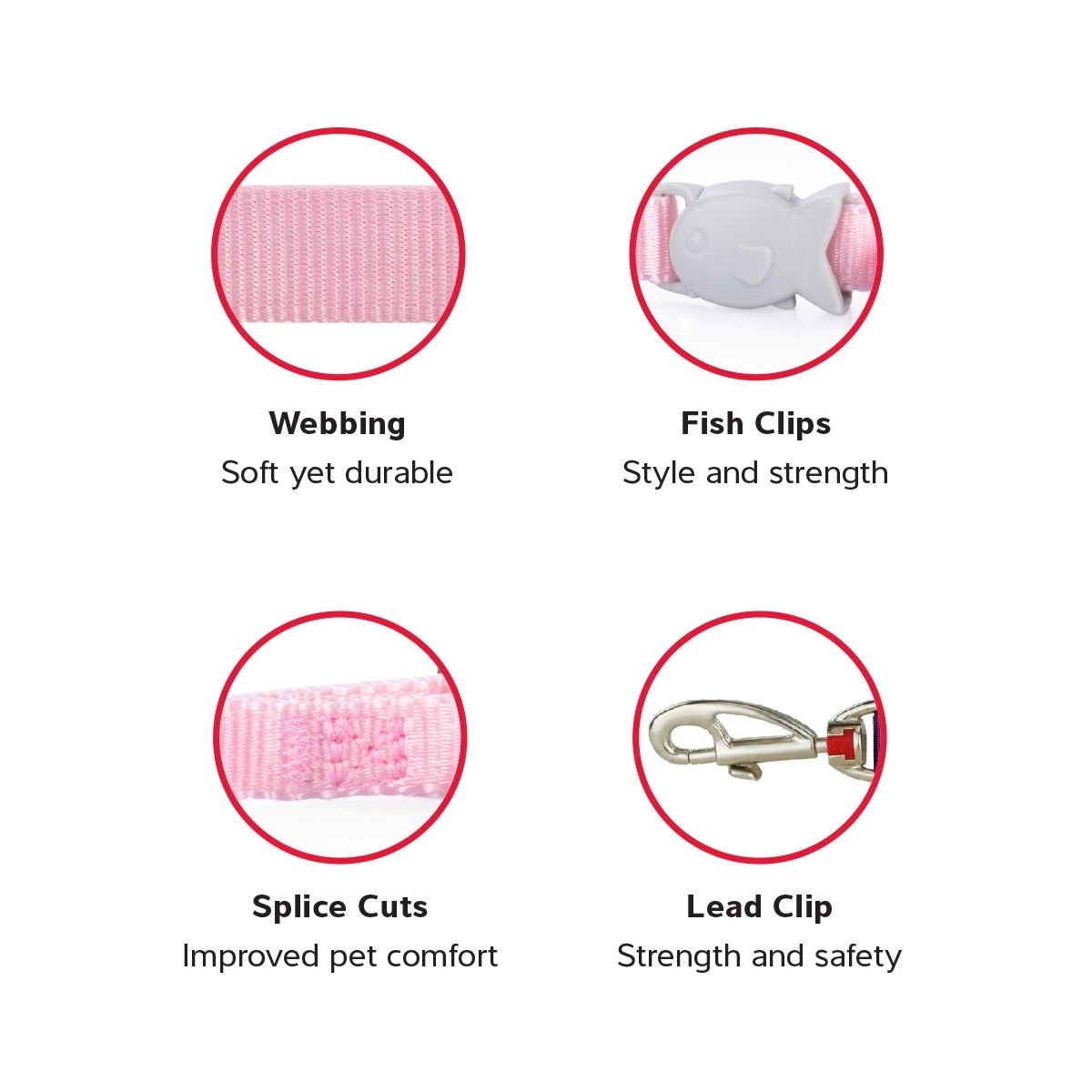 The stylish Fish Clips make these cat harnesses easy to put on and take off.