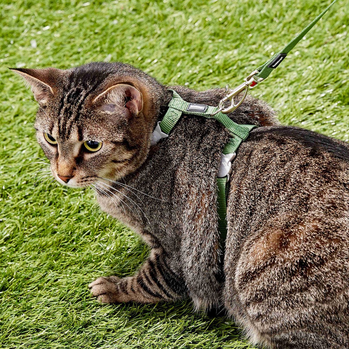 You can easily adjust the neck and body loops on the harness to suit cats of all sizes.