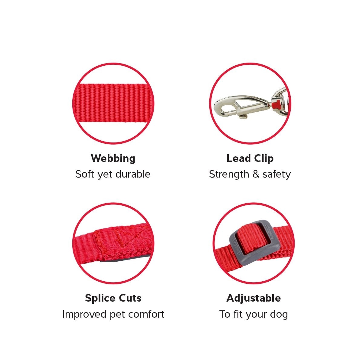 Red Dingo padded handle dog leads are made from soft, abrasion-resistant webbing and feature an easy-to-use clip. They can be adjusted between 3.5 and 6 ft. to accommodate dogs of different sizes and suit a variety of walking and training needs. Designed for user comfort, the soft padded handle minimizes hand fatigue—even on the longest walks.