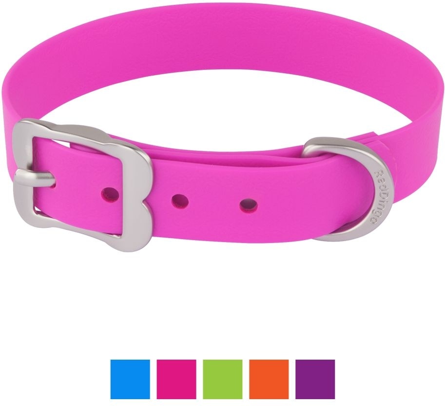 Red Dingo waterproof Vivid dog collars are made from high-quality PVC-coated webbing. These low-maintenance collars are made to easily shed dirt and odor—simply rinse with clean water or wipe with a damp cloth to clean. Featuring a traditional pin-style bone-shaped buckle, they are ideal for dogs who regularly swim.