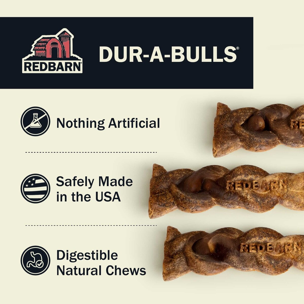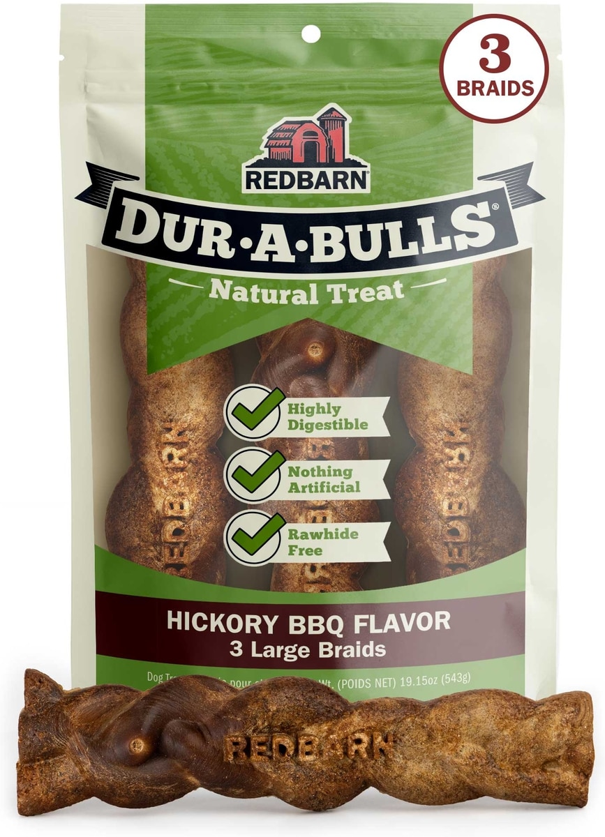 Redbarn Dur-A-Bulls Braids Hickory Flavor Dog Chew Treats, Large, 3 count