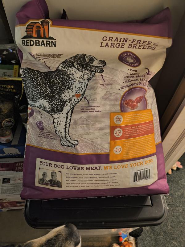 Redbarn dog food is available in a variety of recipes to fit any dog's needs. Choose from Grain-Free, Whole Grain, Puppy, and Large Breed formulas—all tailored to the unique nutritional needs of different pups.