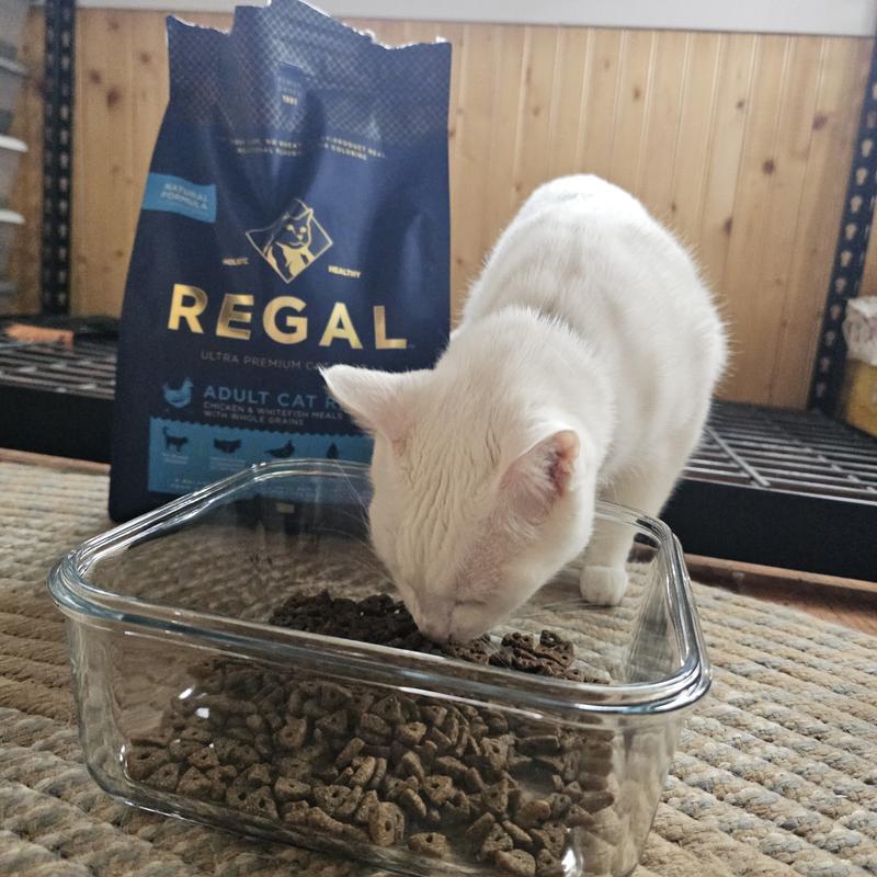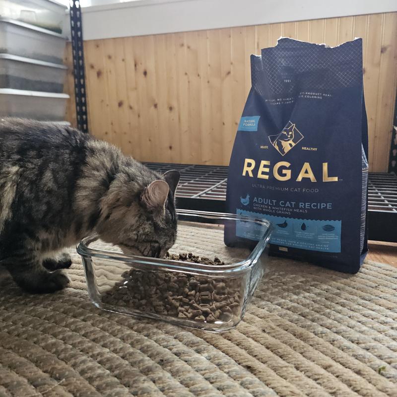 We’re always looking for high-quality dry food options, and the Regal Chicken & Whitefish Meal recipe has quickly become a staple in our house. Even our pickier cats took to it right away. Why we love it: -Protein-rich with chicken and whitefish meal – Offers a balanced blend of animal proteins to support muscle maintenance and overall health. -Made with prebiotics and probiotics – Helps promote healthy digestion, which we’ve definitely noticed in our crew. -No artificial colors, flavors, or preservatives – Clean, trustworthy ingredients that we feel good about feeding. It has a nice kibble size, works well for cats of various ages, and leaves everyone happy/full. Highly recommend for anyone wanting a solid, nutritious dry food!