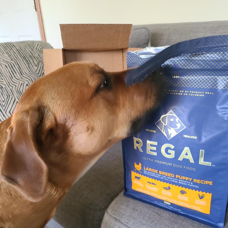 Regal has proven to be a tasty food. My dogs love it ! I started out using Regal as a treat for Mia my Pit and Tazer my Mastiff and realized they had great reactions to this new food! I'm looking to get the bigger bag.I recommend Regal to anyone that wants to give their fur friends a yummy meal. Here in East TN. We need to eat good to climb these mountains and Regal is it. I have been using Chewy as my go to for all my dogs needs