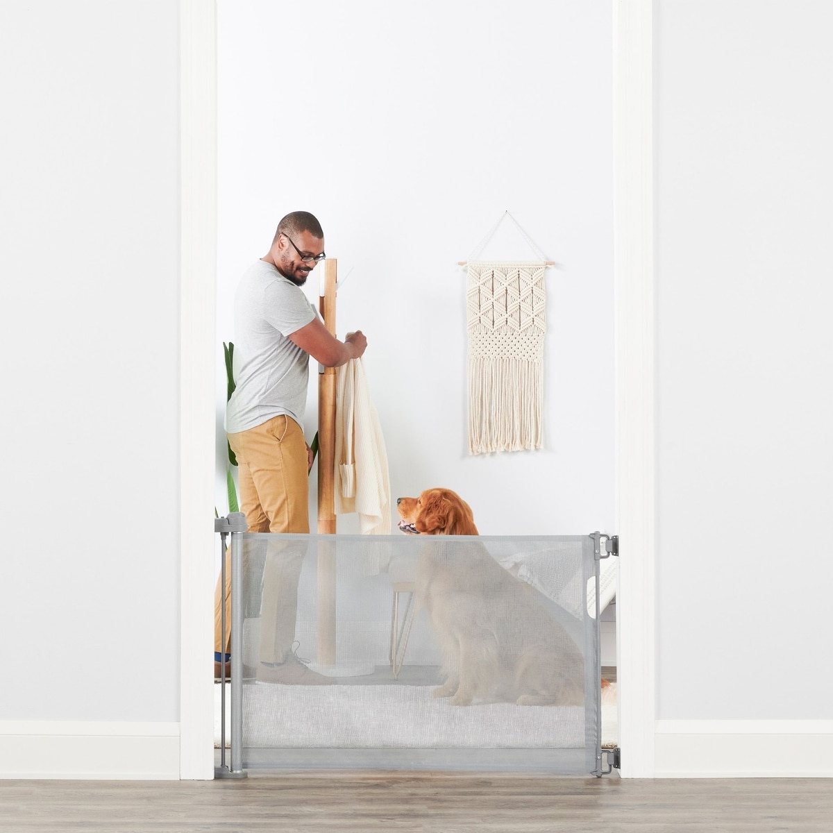 - This dog gate is designed to keep your pup and home protected.