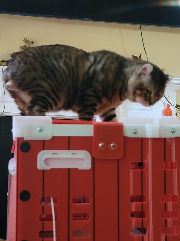 I set up my big red barn in my house as I don't have a safe place to put it outside. It's the perfect size! I raised my last set of chicks in an old horse trough and this is a big improvement! That being said, my 20lb cat has taken up residence on the lid. It is sturdy so it passes that test! Its very well made, with the inserts it will be very easy to clean. The accessories I selected are perfect for it and will be easy to access to maintain. It's truly pet proof at my house! My chicks arrive first week of May and I'm so excited, I ordered Cream Legbars and Barnevelders.