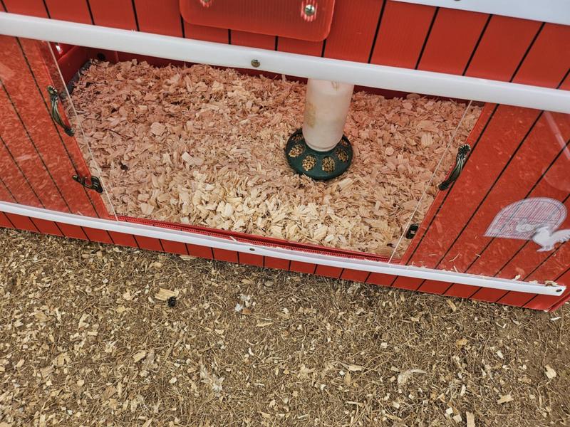 I Got this in on may 17th to hold my first 4 baby chickens in it when it got to me it was dusty and smelled like plastic mixed with something else so I cleaned it up, though that would be the only issue that I would have with it but nope with in a month or less the handle for one door broke off , one panel door also came off the tape or glue holding the sliding doors slide stripes on also started piling up, moved my 4 oldest chickens out to the coop and run in July and gave it a clean down put my 11 smaller chickens in it and it and started to see more black dots in it that I didn't think nothing of at first back when I set it up in my to find out that it was mold inside small areas that is completely in possible to clean out and that was why all my chickens seemed to be having issue's with breathing and sneezing , I liked it at first the set up is nice just to may issue's with it, believe that it shouldn't have small openings that can truly form mold deeper inside of any of the parts that need to be cleaned seeing that baby chickens are very messy and that the doors could be put on alot better then what they are and that it shouldn't smell funny or off when receiving it.