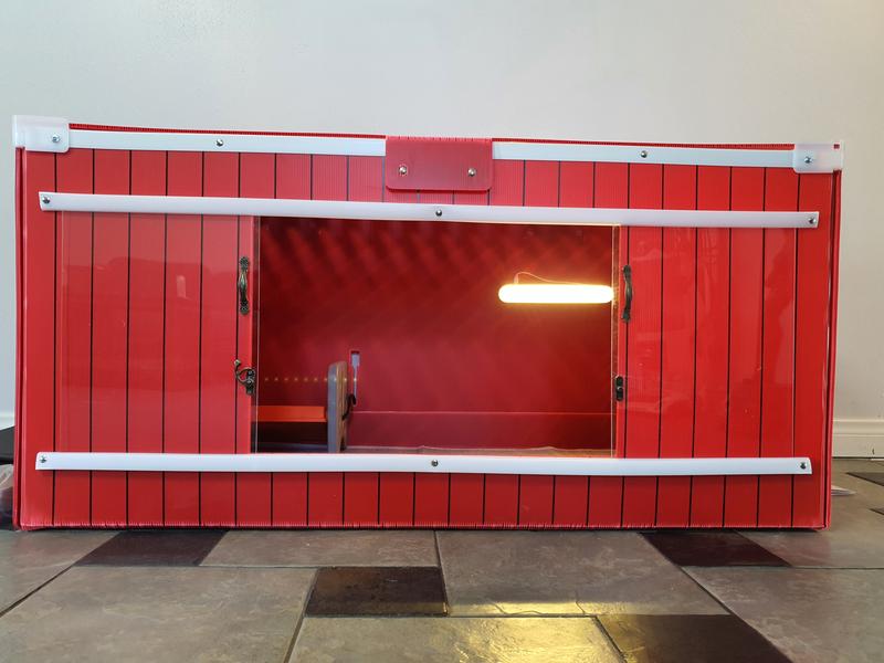 I set up my big red barn in my house as I don't have a safe place to put it outside. It's the perfect size! I raised my last set of chicks in an old horse trough