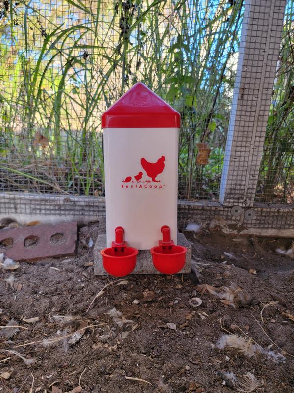 I made a 5 gallon bucket waterer but it is too heavy/big to hang and far too big for my flock of 6. This is a perfect little size. I will not be able to use it until spring but already happy with the size and the option to use cups or nipples. I am going to try the cups first as we have never used these before. I can already tell that the shape of the top will be successful in keeping the hens off. I have always been happy with RentACoop products and can already tell that this will be equally good quality.