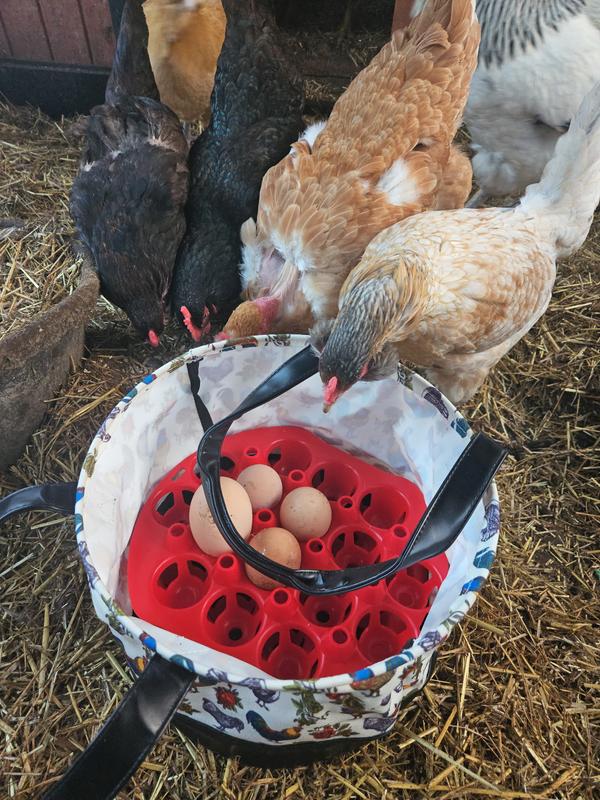 I have always struggled with egg collection. Pockets with smashed gooey egg shells. Wire baskets that only hold a limited amount of eggs and pile them on top of