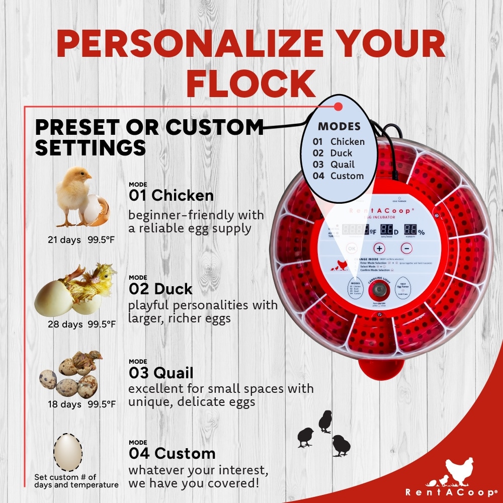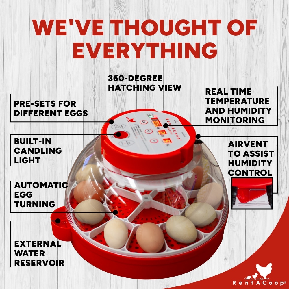 RentACoop Smart 16 Egg Incubator with Built-In Candler