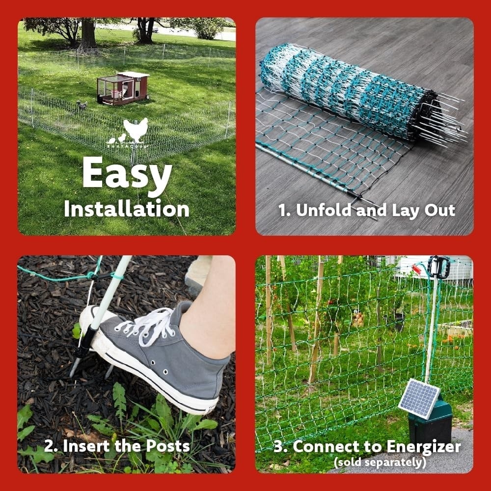 The fence can be electrified by adding an energizer (not included). RentACoop offers solar & pug-in energizers and a voltmeter separately.