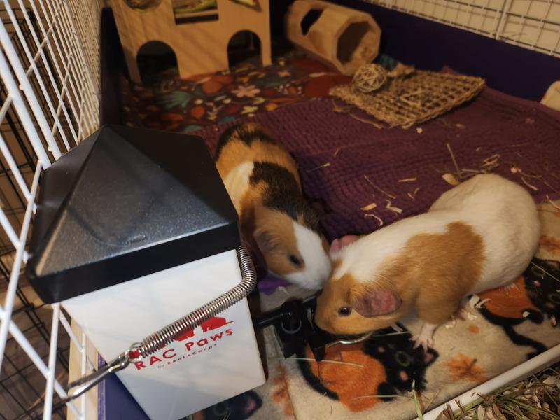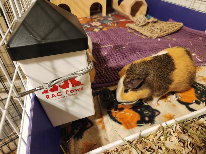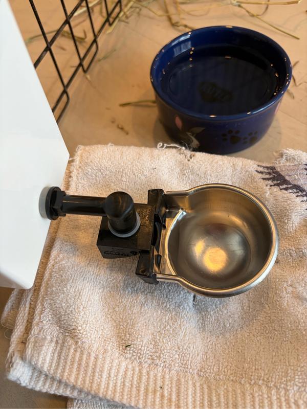 I love how easy it is to refill this waterer. My piggies love being able to get more water than the traditional water bottle. The bowl bwing stainless steel is nice bc my piggies love to chew and it is easy to wipe clean. My main issue it is hard to attach it to my C&C cage in a way that they couldnt chew it.