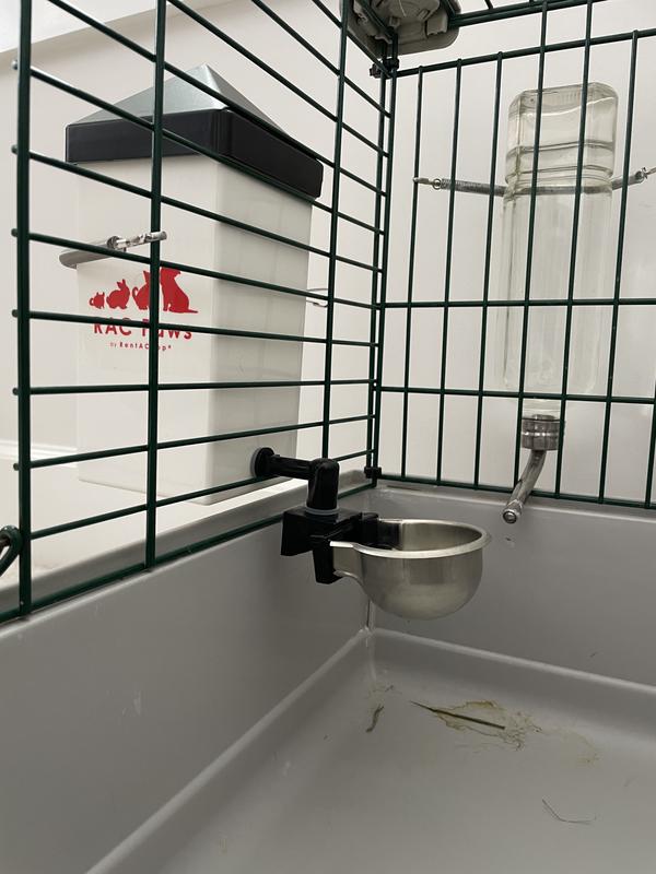 Overall I like this concept for my rabbit. I hate water bottles because the can’t get enough, and the regular gravity water bowl that sits on the cage floor gets