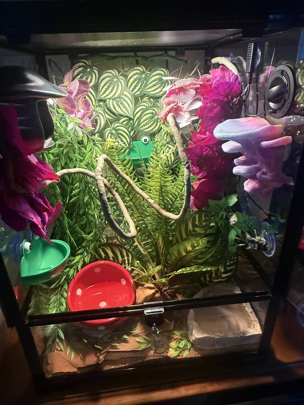 This was an upgrade for my tree frogs who needed more space. It was so much fun decorating it with my kids. It was simple to put together. I’m not a huge fan of the handles, they aren’t super secure, but everything else is great. It’s a beautiful terrarium.