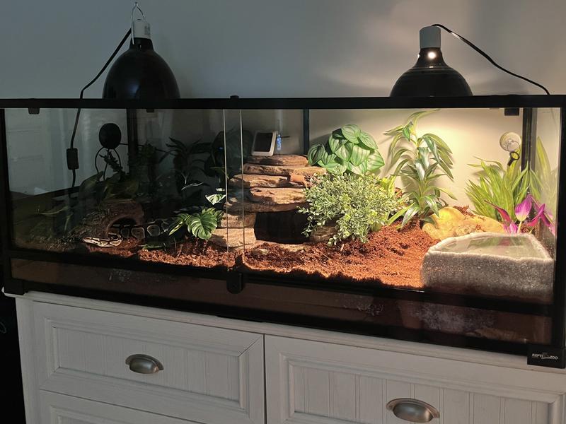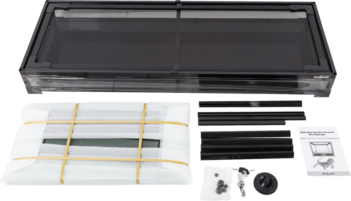 REPTI ZOO Glass Reptile Terrarium Sliding Doors with Screen Ventilation, Black, 64-gal