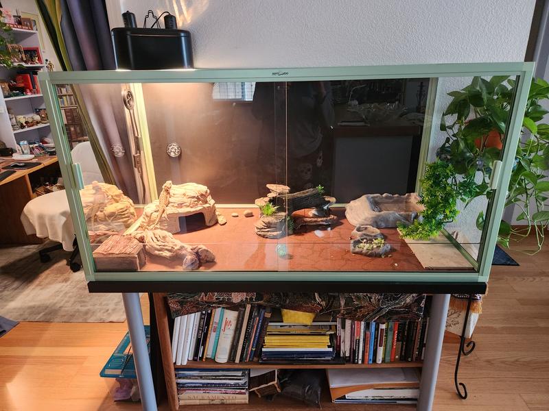 This product has a top screen ventilation that supports proper air circulation and the use of heating lamps or UVB lights.