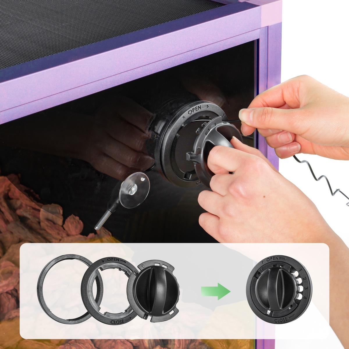 This product has a top screen ventilation that supports proper air circulation and the use of heating lamps or UVB lights.
