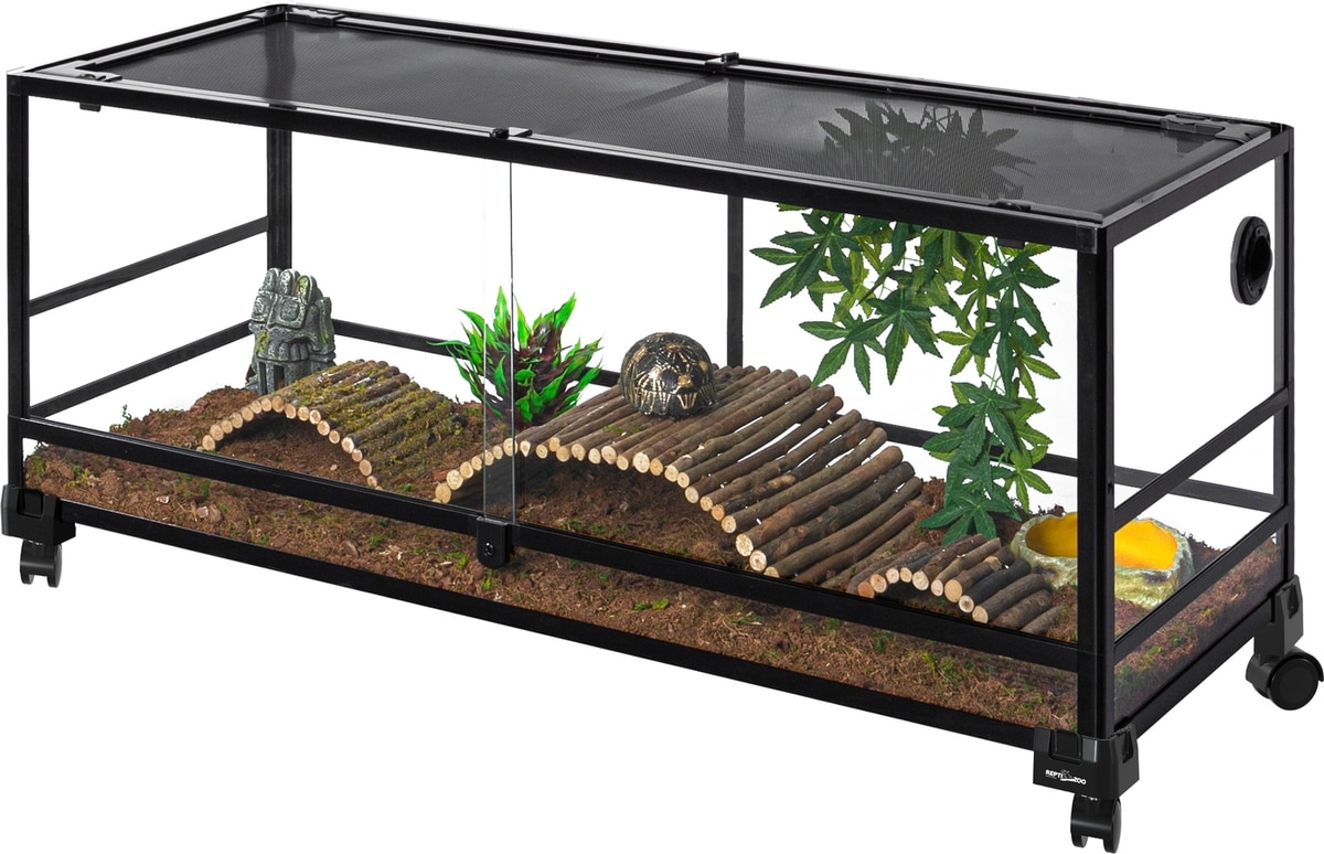 The raised waterproof bottom frame allows for a substrate heater, making this tank suitable for both desert and rainforest environments.