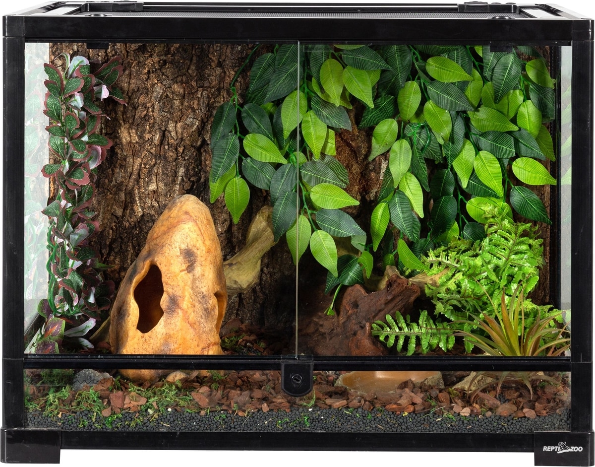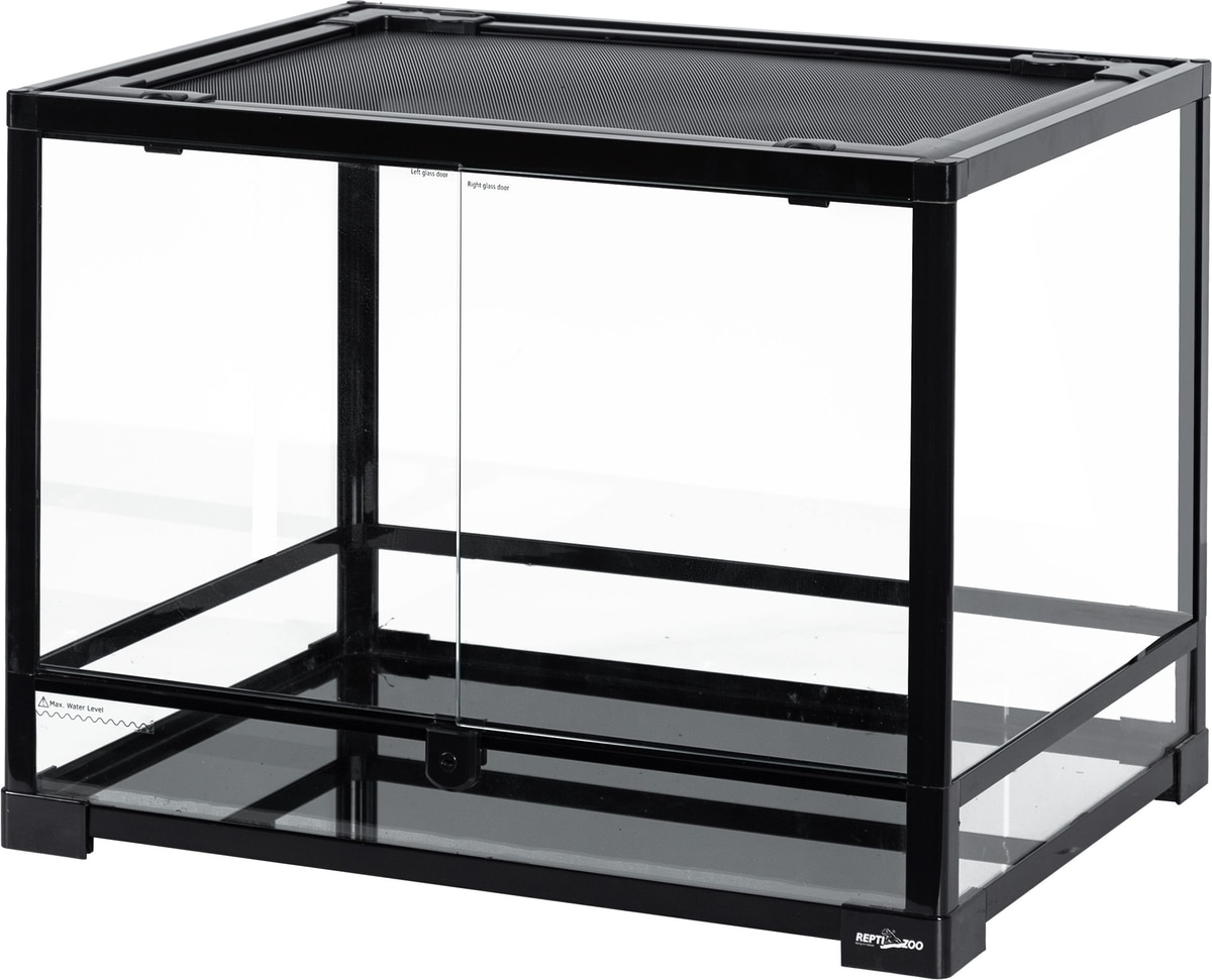 REPTI ZOO Tempered Glass Front Opening with Double Hinge Door Terrarium, Black, 32-gal