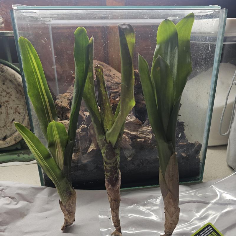 These bromeliads arrived looking great. It's a true assortment. I'm including a photo in front of my small zebra isopod vivarium. Also in a big fourty plus gallon