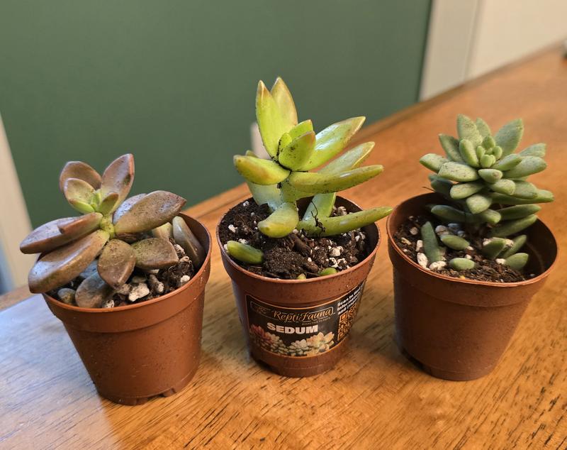 The ReptiFauna Assorted Sedum Desert Plant, 2-in Pot, 3 count arrived plump and healthy although they were strangely packed in plastic wrapping without labels or