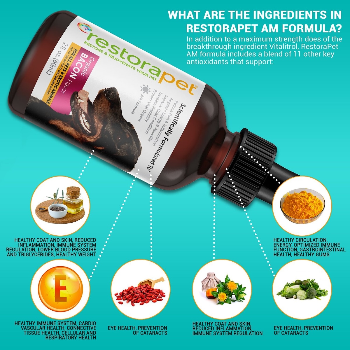 RestoraPet Daily Supplement Organic Bacon Flavor Dog & Cat Supplement, 2-fl oz bottle