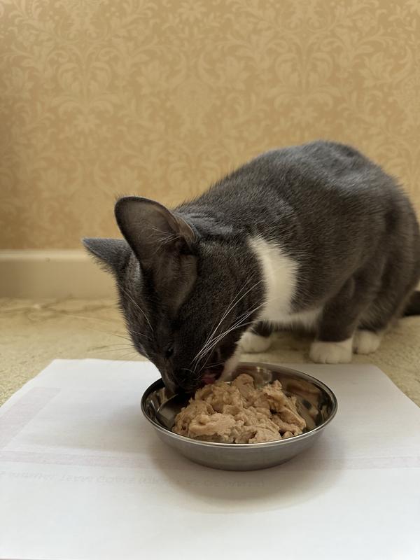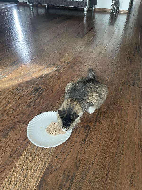 My orange female 6 yo cat can be finicky about wet foods. She usually prefers pate consistency and seafood flavors. The Reveal entrees pate food tuna salmon flavor fit the bill. The first time I fed it to her she chowed down and cleaned her bowl. After that she would only give it a sniff and did not eat more than a bite or so. Did not seem to love the flavor.